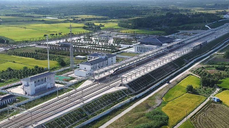 8月23日,試驗(yàn)列車(chē)從荊門(mén)市沙洋西站折返,駛向襄陽(yáng)東站(無(wú)人機(jī)照片)。
