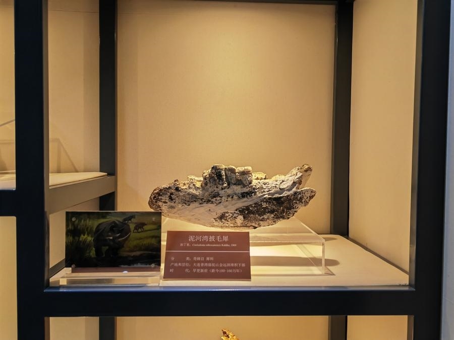 大連駱駝山遺址出土的泥河灣披毛犀化石。新華社記者 張博群 攝