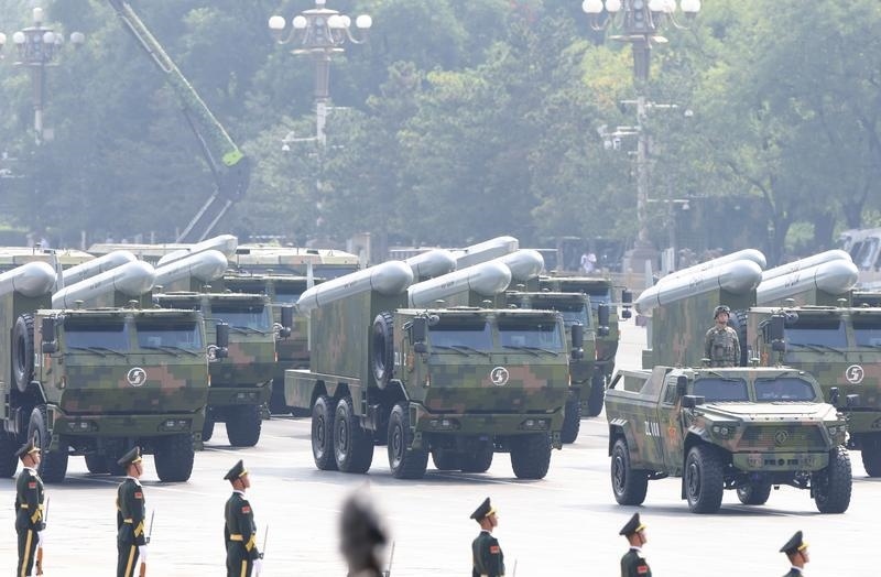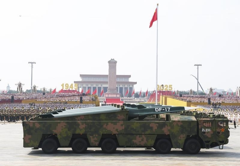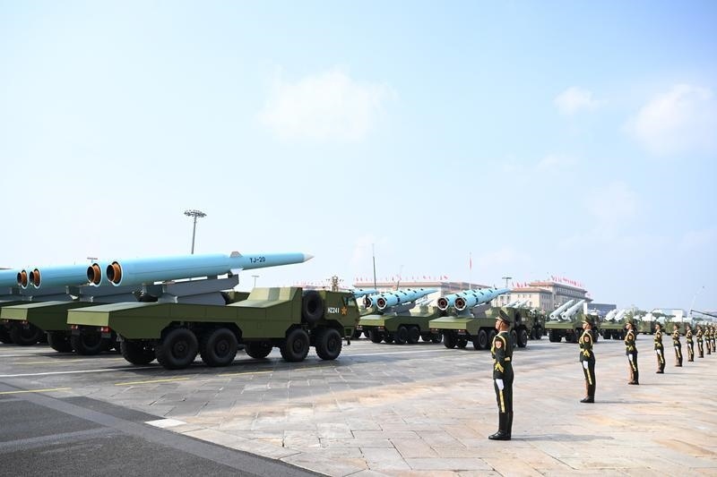 9月3日,紀(jì)念中國人民抗日戰(zhàn)爭暨世界反法西斯戰(zhàn)爭勝利80周年大會(huì)在北京隆重舉行。這是高超聲速導(dǎo)彈方隊(duì)接受檢閱。