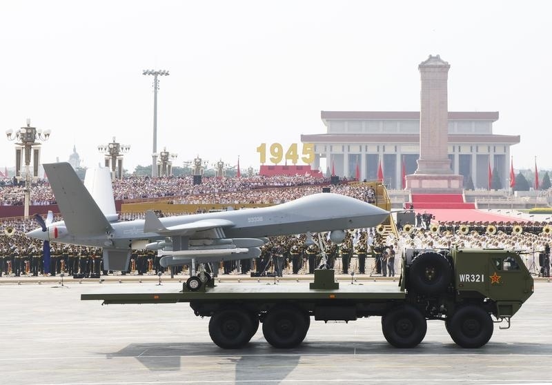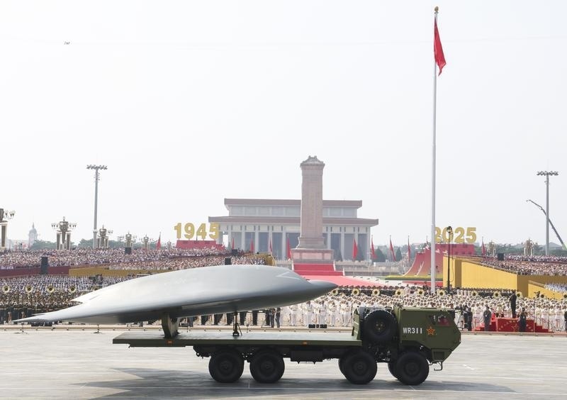 9月3日,紀(jì)念中國人民抗日戰(zhàn)爭暨世界反法西斯戰(zhàn)爭勝利80周年大會(huì)在北京隆重舉行。這是空中無人作戰(zhàn)方隊(duì)接受檢閱。