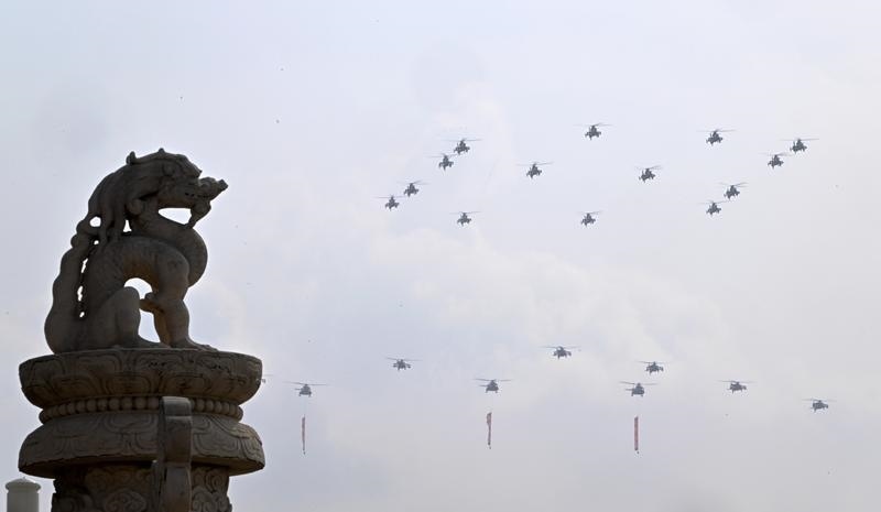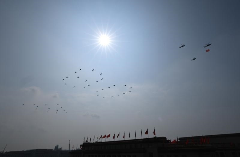 9月3日,紀(jì)念中國人民抗日戰(zhàn)爭暨世界反法西斯戰(zhàn)爭勝利80周年大會(huì)在北京隆重舉行。這是教練機(jī)梯隊(duì)接受檢閱。