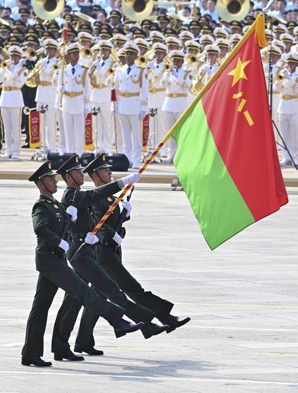9月3日,紀(jì)念中國人民抗日戰(zhàn)爭暨世界反法西斯戰(zhàn)爭勝利80周年大會(huì)在北京隆重舉行。這是戰(zhàn)旗方隊(duì)接受檢閱。
