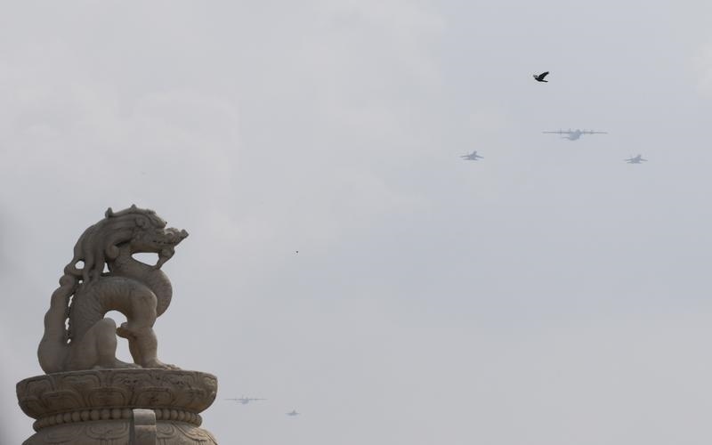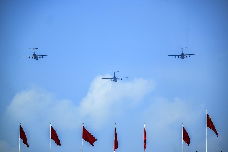 9月3日,紀(jì)念中國人民抗日戰(zhàn)爭暨世界反法西斯戰(zhàn)爭勝利80周年大會(huì)在北京隆重舉行。這是運(yùn)輸機(jī)梯隊(duì)接受檢閱。