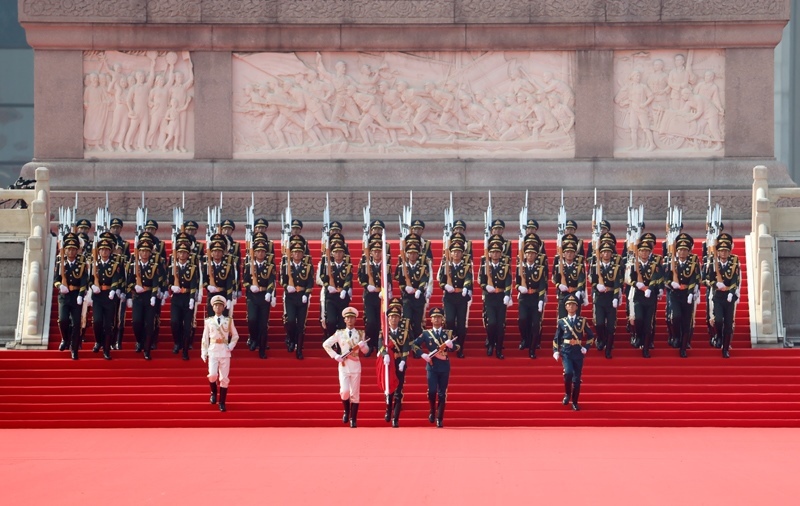盛裝的天安門廣場,定格一個(gè)個(gè)莊嚴(yán)時(shí)刻。鐵甲洪流呼嘯,勝利吶喊響徹云霄。習(xí)近平總書記向人們揮手致意。