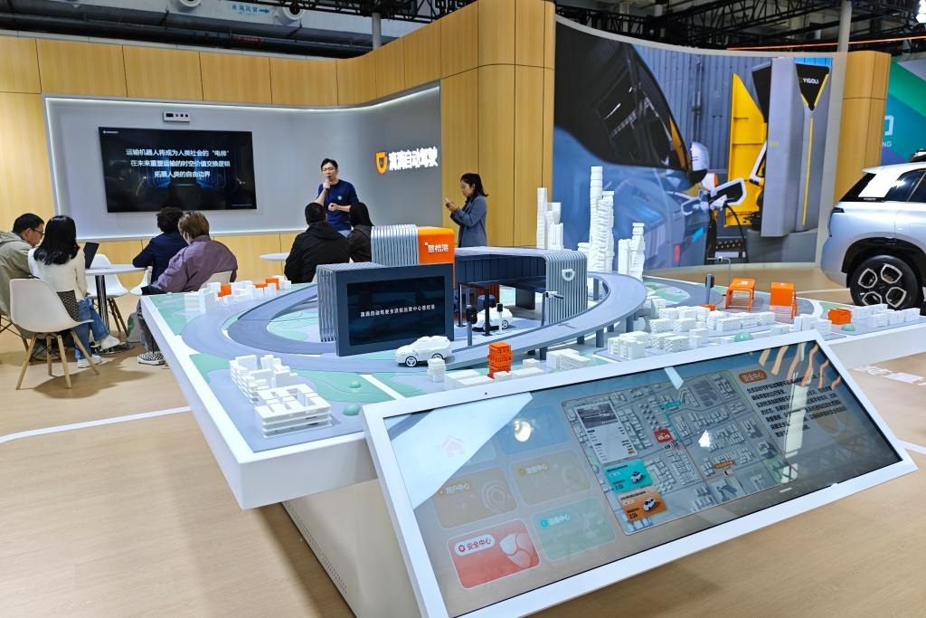 在滴滴自動(dòng)駕駛展臺(tái),智能沙盤展示全無(wú)人Robotaxi運(yùn)營(yíng)場(chǎng)景。新華社記者 唐詩(shī)凝 攝