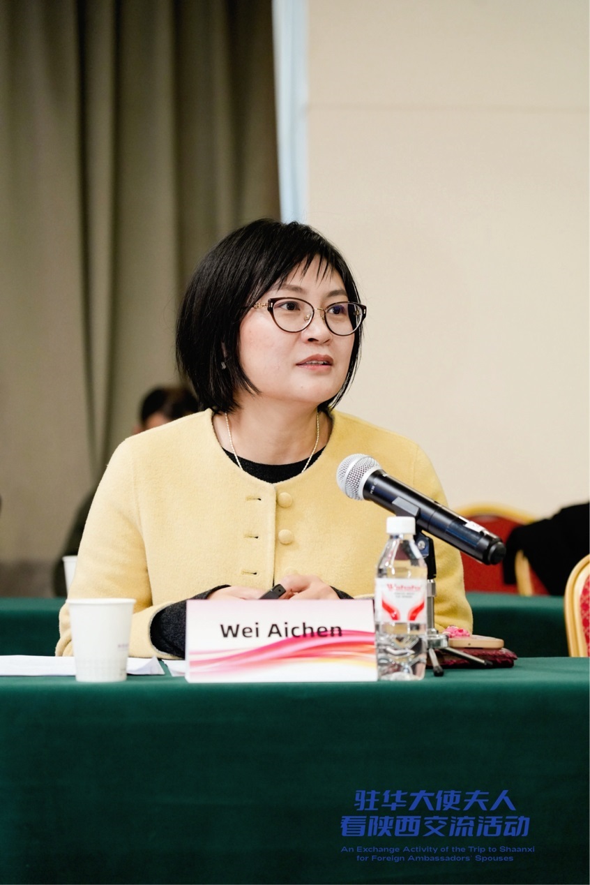 王玉娥的分享為駐華大使夫人打開了陜西婦女事業(yè)的“全景圖”,女性代表、西安宏源視訊設(shè)備有限責(zé)任公司CEO黃姍姍,“愛心媽媽”代表、西安市蓮湖區(qū)艾樂生社會(huì)工作服務(wù)中心主任韋艾辰的發(fā)言,則是這幅圖景中最鮮活的“特寫鏡頭”。