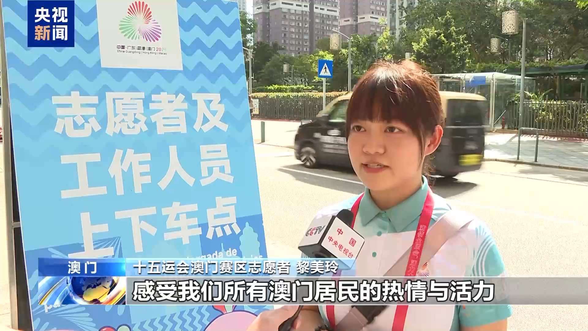 十五運(yùn)會(huì)澳門(mén)賽區(qū)志愿者 黎美玲:我本身是一名小學(xué)老師,這次很開(kāi)心以志愿者的身份參與在家門(mén)口舉辦的全運(yùn)會(huì)賽事的服務(wù)工作。我們已經(jīng)都準(zhǔn)備好了,歡迎各地的朋友來(lái)到澳門(mén),感受激情全運(yùn)會(huì)和活力大灣區(qū),感受我們所有澳門(mén)居民的熱情與活力。