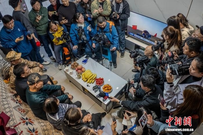 圖為陳冬父母及親友觀看直播。中新社記者 李超慶 攝