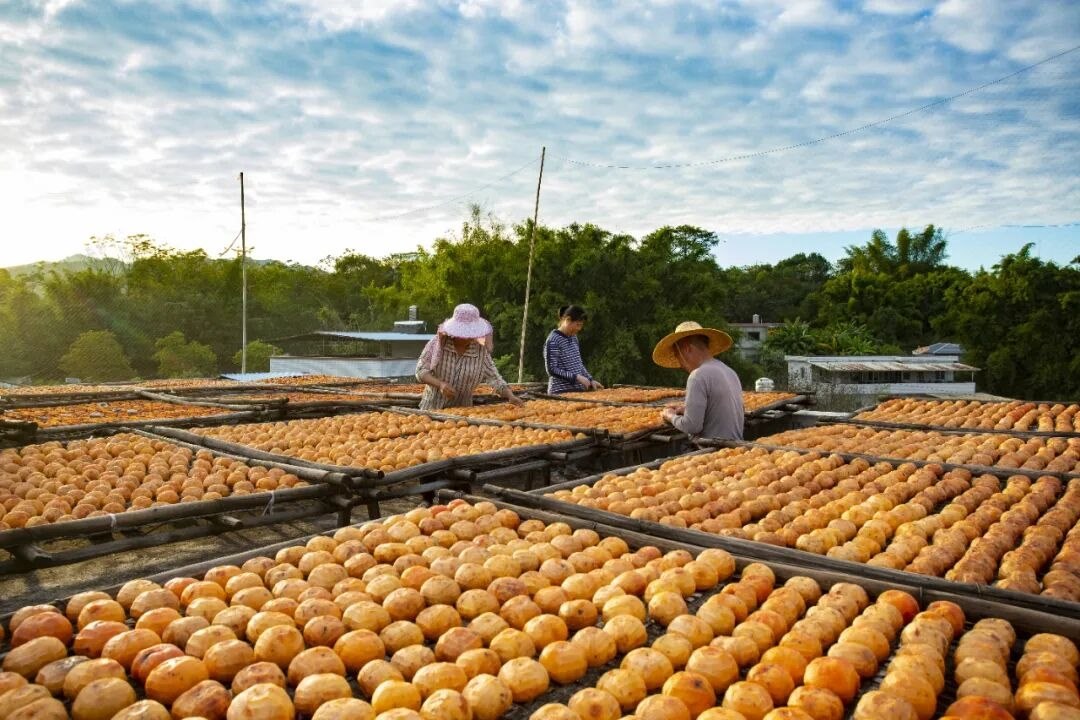 在廣東省梅州市平遠縣石正鎮(zhèn)中東村,村民正趁晴好天氣曬制柿餅。平遠縣供銷總公司通過合作社與農(nóng)戶簽訂收購合約,使石正柿花成為當(dāng)?shù)剞r(nóng)民增收致富的特色產(chǎn)業(yè)。馮錫權(quán)攝(影像中國)