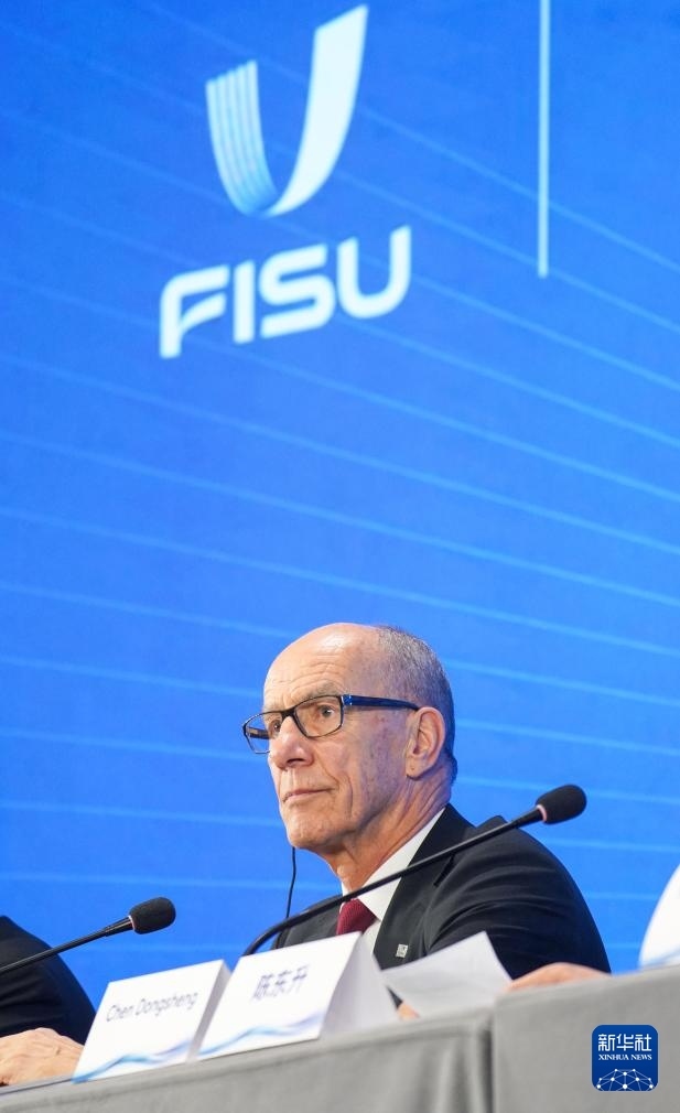11月26日,國(guó)際大學(xué)生體育聯(lián)合會(huì)主席雷諾·艾德在新聞發(fā)布會(huì)上。新華社記者 許暢 攝