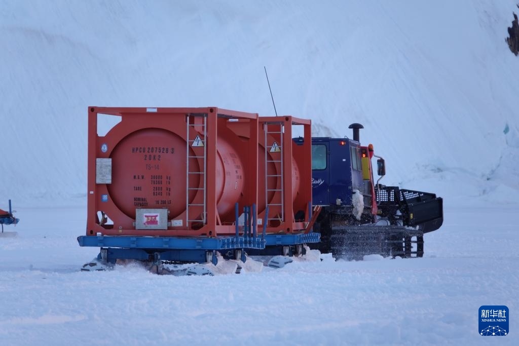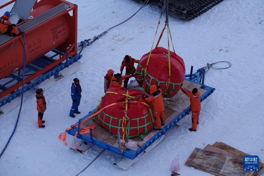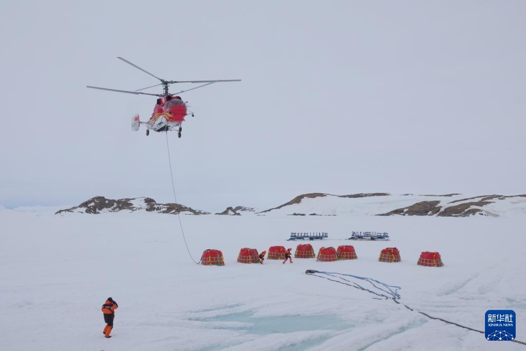 據(jù)悉,“雪龍2”號(hào)正采取“白天空吊、夜晚冰運(yùn)”的節(jié)奏開展物資和燃油卸運(yùn),白天利用直升機(jī)吊掛油囊,夜間趁低溫海冰承載力較好時(shí)開展冰面車輛雪橇運(yùn)輸。