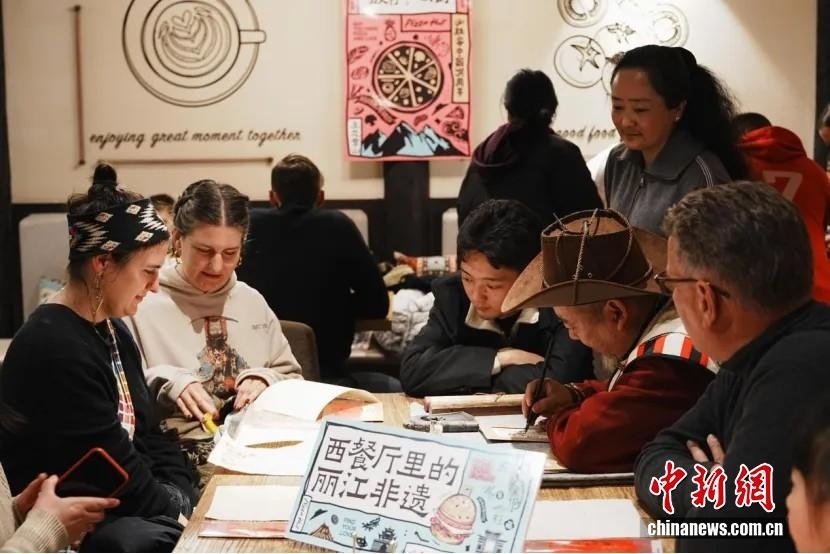 2025年3月9日,云南麗江正值納西族傳統(tǒng)節(jié)日三多節(jié),非遺傳承人和鈞與旅居麗江的民眾開展東巴文化交流活動。 中新社發(fā) 顧一航 攝