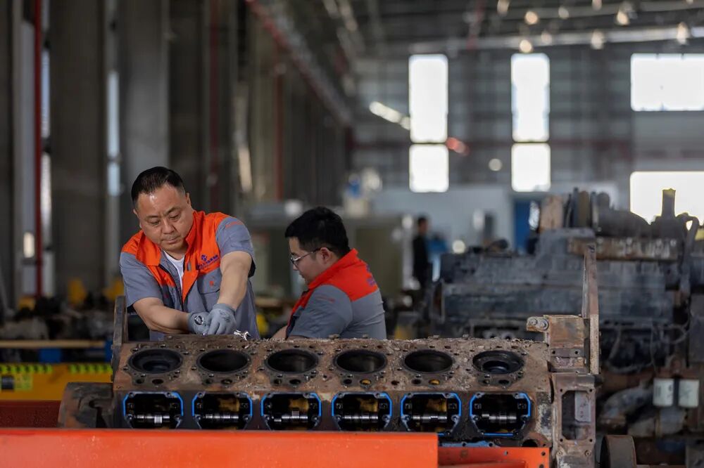 1月13日,中車(chē)國(guó)際車(chē)輛產(chǎn)業(yè)(海南)有限公司維修師在工廠維修發(fā)動(dòng)機(jī)。(中國(guó)外文局歐亞中心記者段崴 攝)