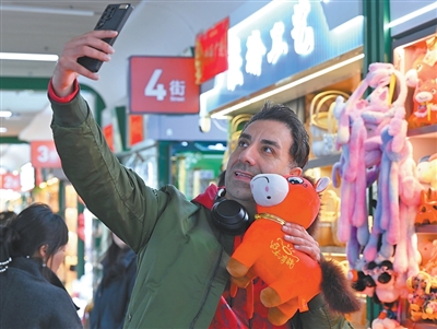 1月12日,在浙江義烏市國際商貿(mào)城一區(qū)玩具銷售區(qū),芬蘭外商與“哭哭馬”小馬公仔玩具合影。