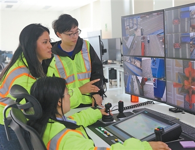 2025年10月7日,在秘魯錢凱港,中遠海運港口秘魯錢凱公司中外員工進行作業(yè)監(jiān)控。