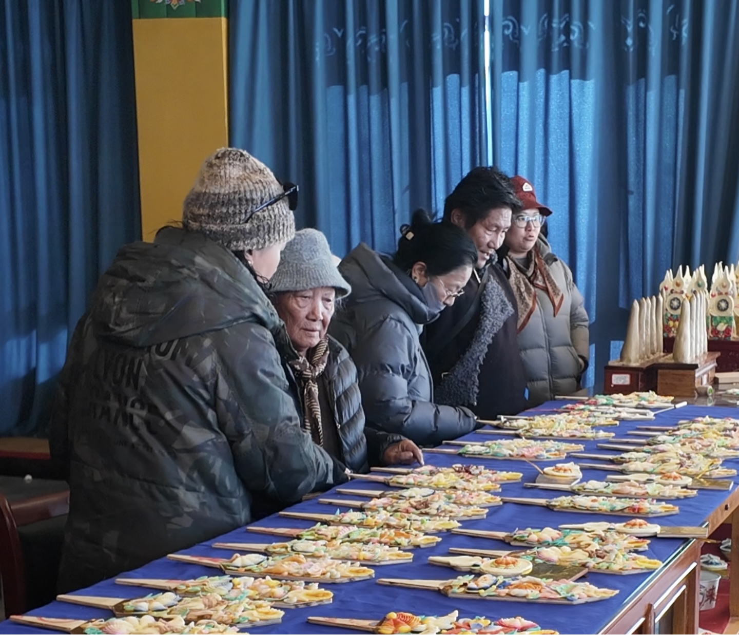 “哪種圖案寓意更好?”“‘八吉祥徽’和‘和睦四瑞’能搭配嗎?”問題接連不斷,倫珠忙得幾乎腳不沾地。他介紹,合作社于2025年11月成立,匯集了30多位手藝精湛的老師傅。為應(yīng)對新年需求,大家提前一個月便開始制作,沒想到開售僅3天,1500多對酥油花便已售出,備貨幾乎告罄。