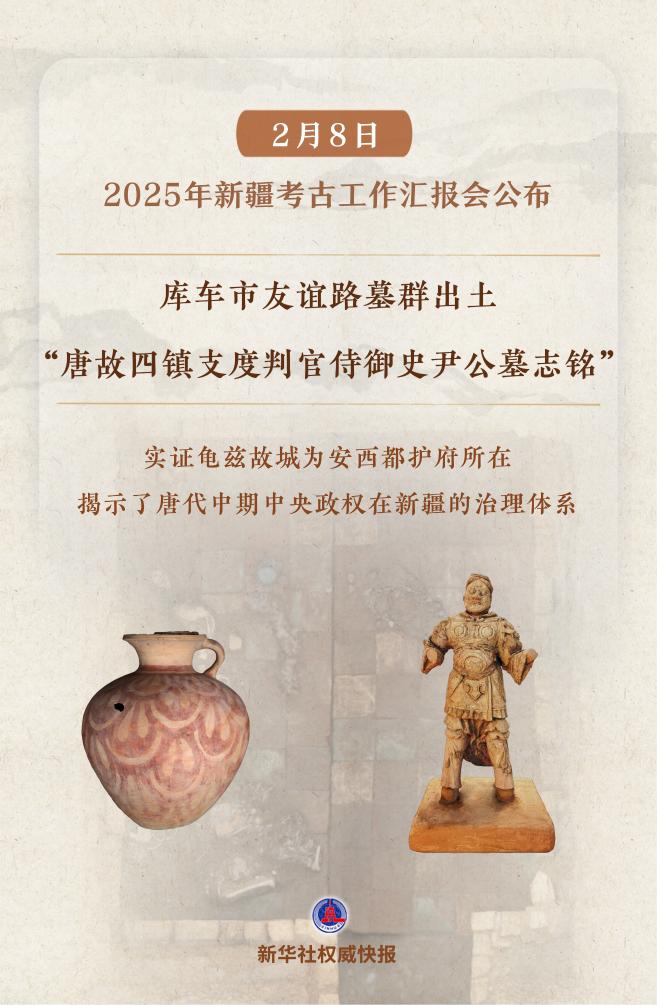 2月8日在京舉行的2025年新疆考古工作匯報(bào)會(huì)上,公布了庫(kù)車(chē)市友誼路墓群等“實(shí)證歷代中央政權(quán)有效管轄治理新疆”考古新發(fā)現(xiàn)。