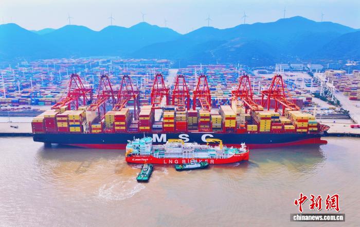 中新網(wǎng)寧波2月13日電 (張斌 駱澤明)13日,浙江寧波穿山港區(qū)的加注船“海洋石油302”輪完成對“史黛絲”輪的保稅LNG燃料加注,該船此前已在梅山港區(qū)為“布魯塞爾快航”輪加注,單次航次完成雙港區(qū)雙船加注,這標(biāo)志著浙江自貿(mào)試驗區(qū)保稅LNG燃料“一船多供”模式在寧波港區(qū)落地。