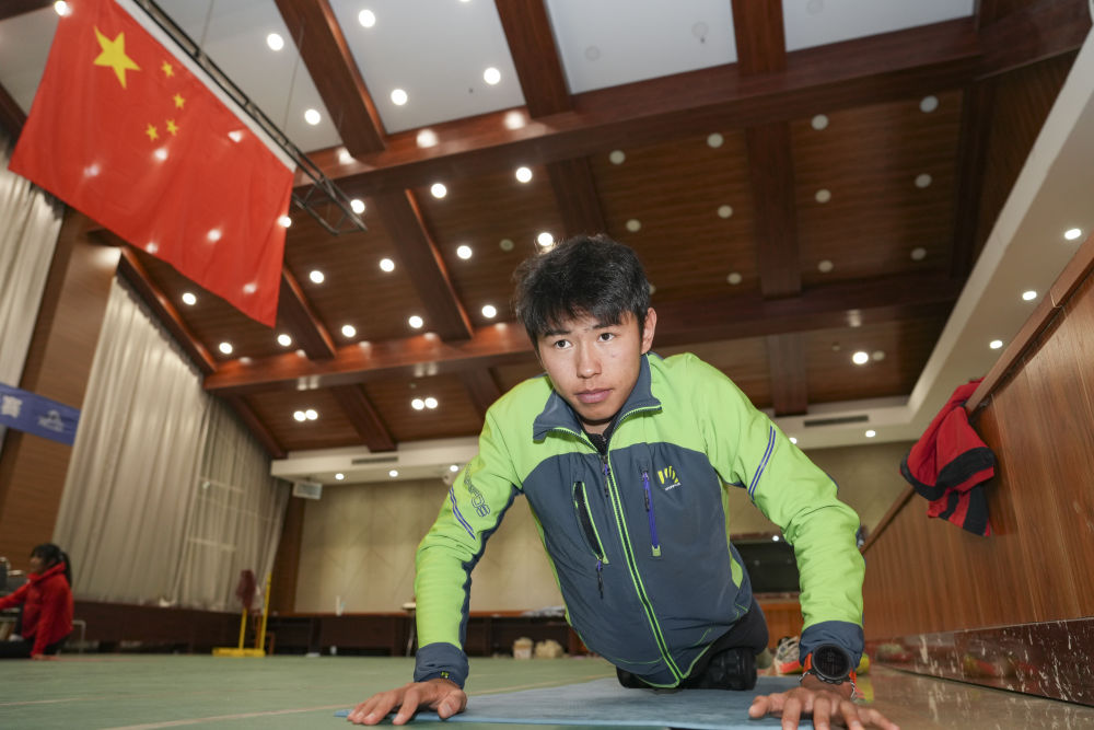 2026年2月19日,次旦玉珍在米蘭-科爾蒂納冬奧會滑雪登山女子個人短距離比賽前熱身。新華社記者 顏麟蘊 攝