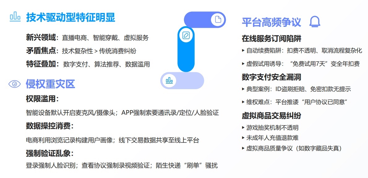 與此同時,隨著直播電商、智能穿戴、虛擬服務等數(shù)字化消費的爆發(fā)式增長,相關爭議也呈現(xiàn)上升趨勢。