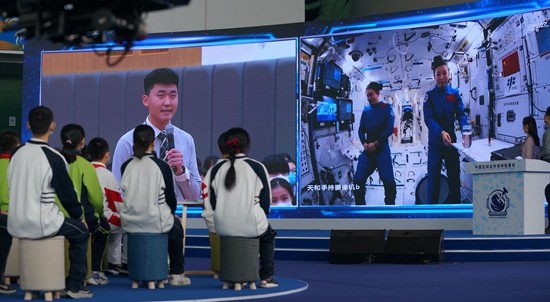 12月9日,中國空間站“天宮課堂”第一課正式開講,此次授課活動在中國科技館設(shè)地面主課堂,在廣西南寧、四川汶川、香港、澳門分設(shè)4個地面分課堂,共1420名中小學(xué)生代表參加現(xiàn)場活動。圖為青少年向航天員提問。中國科技館供圖