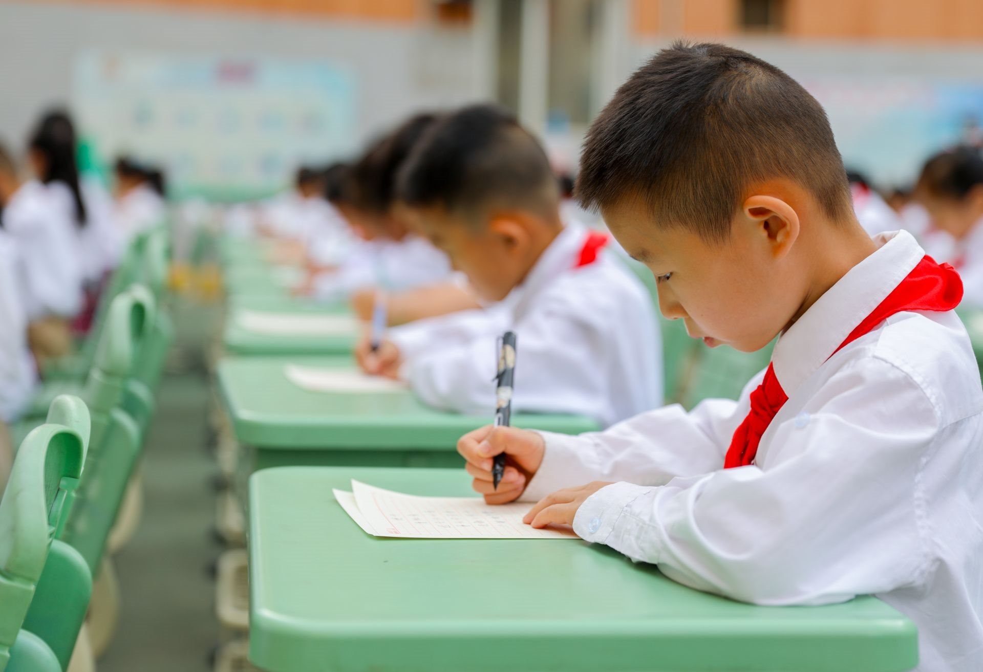 6月13日,呼和浩特市玉泉區(qū)恒昌店巷小學(xué)的學(xué)生們正在參加書法比賽。當(dāng)日,該校“校園書法文化節(jié)”漢字書寫大賽開賽,200多名學(xué)生在硬筆和軟筆項目上展開比拼。活動旨在提高孩子們漢字書寫水平,弘揚中華民族優(yōu)秀傳統(tǒng)文化。