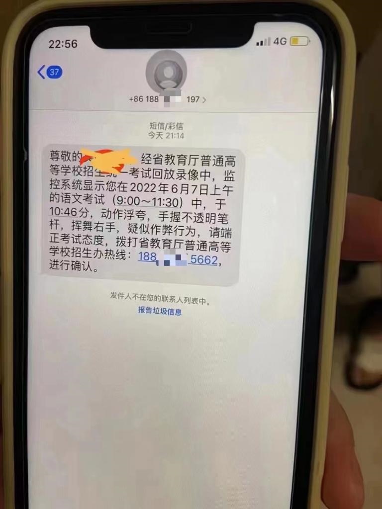 “尊敬的考生×××,經(jīng)省教育廳普通高等學(xué)校招生統(tǒng)一考試回放錄像中,監(jiān)控系統(tǒng)顯示您在2022年6月7日上午的語文考試(9:00—11:30)中,于10時46分,動作浮夸,手握不透明筆桿,揮舞右手,疑似作弊行為,請端正考試態(tài)度,撥打省教育廳普通高等學(xué)校招生辦熱線:188×××進(jìn)行確認(rèn)。”近日,有考生向廈門警方反映,自己接到了聲稱是“省教育廳普通高等學(xué)校招生辦”的通知短信,懷疑是詐騙信息。該短信在開頭準(zhǔn)確寫明了考生姓名,并在結(jié)尾要求考生主動撥電話號碼進(jìn)行確認(rèn)。經(jīng)與教育部門核實(shí)確認(rèn),高考作弊違規(guī)行為不會以短信、電話、鏈接等方式通知。廈門警方提醒,不法分子通過非正常渠道搜集到考生信息,并向考生發(fā)送所謂“疑似作弊”的通知短信,考生一旦回?fù)茈娫?,就可能被不法分子以“處理作弊行為”為由?shí)施詐騙?! ?/p>
