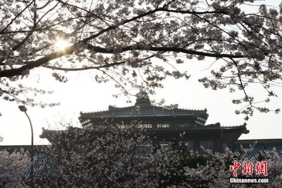 武漢大學(xué)櫻花綻放。