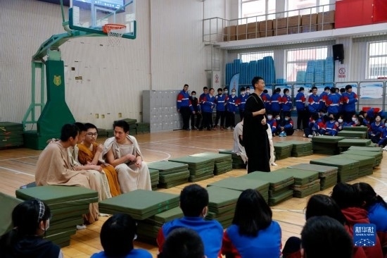 3月29日,中學生在展示根據(jù)數(shù)學歷史故事創(chuàng)編的話劇。