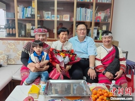 圖為梁洲輔母子二人和沙部·魯比一家三口在新房中合影。張廣權(quán) 攝