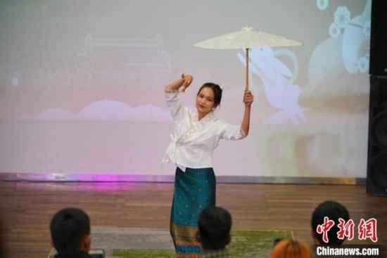 圖為泰國(guó)留學(xué)生表演蓬朗舞。劉冉陽(yáng) 攝