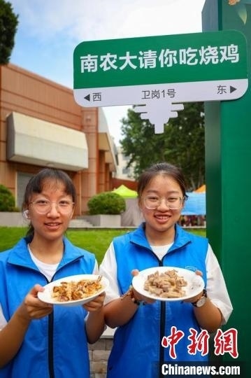 迎新現(xiàn)場,南京農(nóng)業(yè)大學(xué)食品科技學(xué)院精心制備“南農(nóng)燒雞”,為新生和家長了解學(xué)校特色、食品特色提供直觀感受。泱波 攝