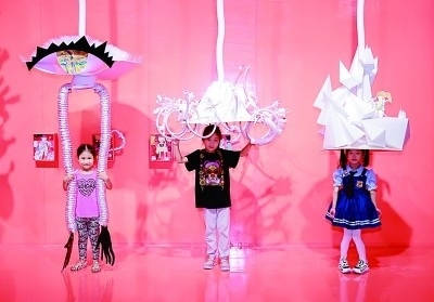 中華世紀壇展廳內,小朋友們正與裝置藝術作品進行互動。資料圖片