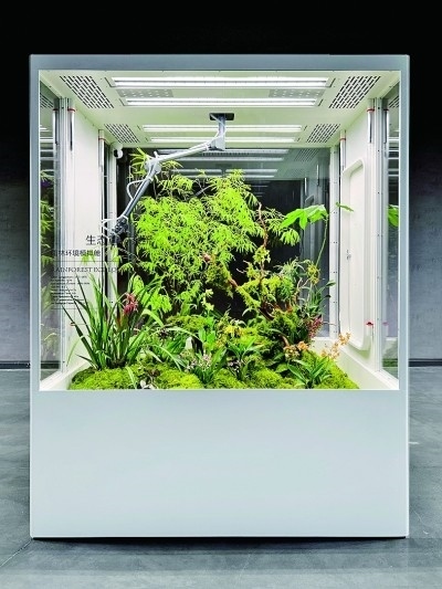 展廳一側,三個立方體環(huán)境模擬艙并排放置,分別在近7立方米的空間內模擬了雨林、海島、沙漠三種生態(tài)環(huán)境,引來許多觀眾圍觀?!霸诟邩橇至⒌亩际校芏嗳硕枷蛲鶕碛幸环綄儆谧约旱淖匀惶斓?。為人們在室內打造一片‘原始森林’便成了我們的使命。”品牌創(chuàng)始人李軍介紹,設計過程中,團隊遇到的一大的難點就是在保證室內環(huán)境舒適度的同時,讓各類植物健康生長。“通過設計師的努力,我們首次將人造太陽光源、溫濕度控制、空氣流通、智能微噴等系統(tǒng)整合于室內種植模擬環(huán)境中,實現了室內種植智能化、自動化、現代化。”李軍表示,做設計亦要遵循自然法則,“人與自然和諧共生”是團隊始終不變的設計宗旨。