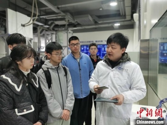 量子計(jì)算專家向高校學(xué)生介紹量子計(jì)算芯片。張俊 攝