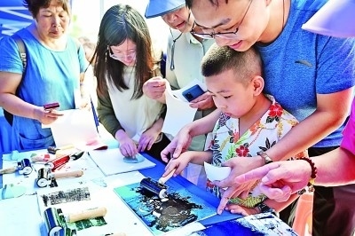 4月24日是“中國(guó)航天日”,海南文昌舉辦“氣象航天手牽手”系列科普活動(dòng),用各種趣味實(shí)驗(yàn)和游戲讓觀眾了解航天知識(shí)。圖為小朋友和家長(zhǎng)在文昌航天科普中心制作航天主題版畫(huà)。新華社記者 郭程攝
