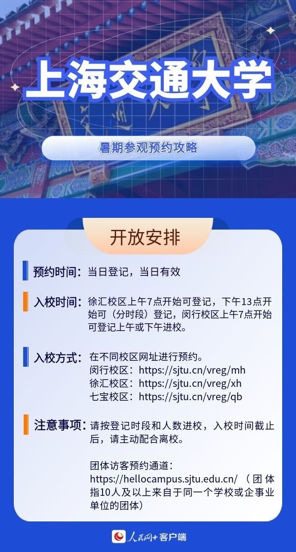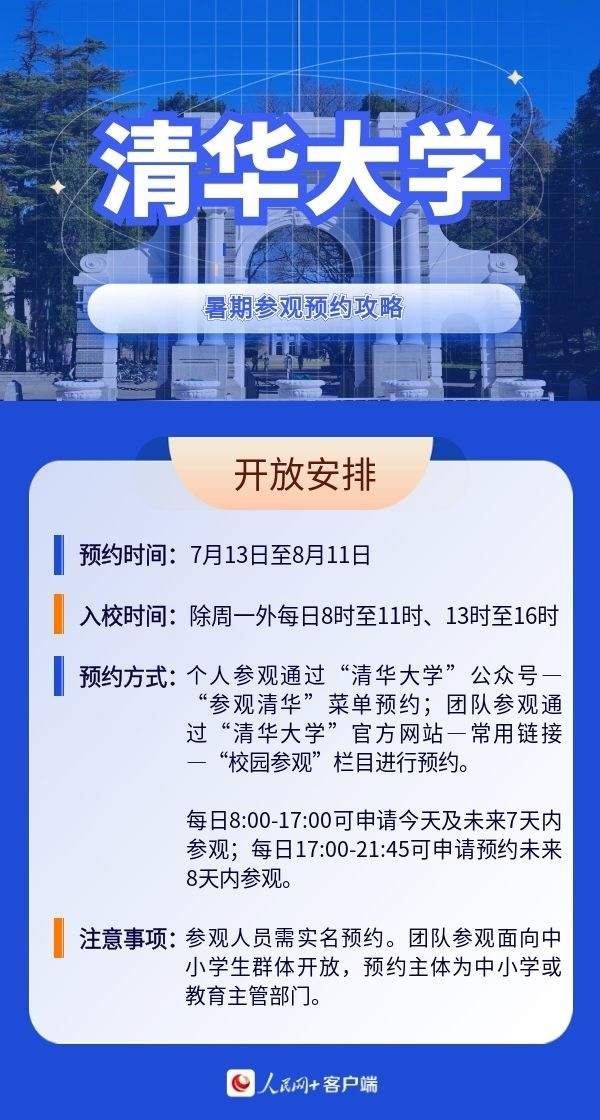 人民網(wǎng)北京7月19日電 暑假來臨,帶孩子參觀高校,感受學校人文歷史底蘊以及濃厚的學術氛圍,已經(jīng)成為很多家長的選擇。近日,全國多所高校開放校園,接受公眾參觀。那么如何預約進校?有什么注意事項?人民網(wǎng)特別整理了部分高校的參觀預約攻略,一起來看。(郝孟佳、實習生趙雪祺)