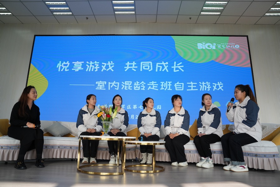 呼和浩特市教育教學(xué)研究中心學(xué)前教育教研員李麗說:“賽罕區(qū)第七幼兒園創(chuàng)建的全園混齡走班室內(nèi)自主游戲?yàn)樘攸c(diǎn)的園本課程,在我們?nèi)械挠變簣@是一項(xiàng)創(chuàng)新之舉。”