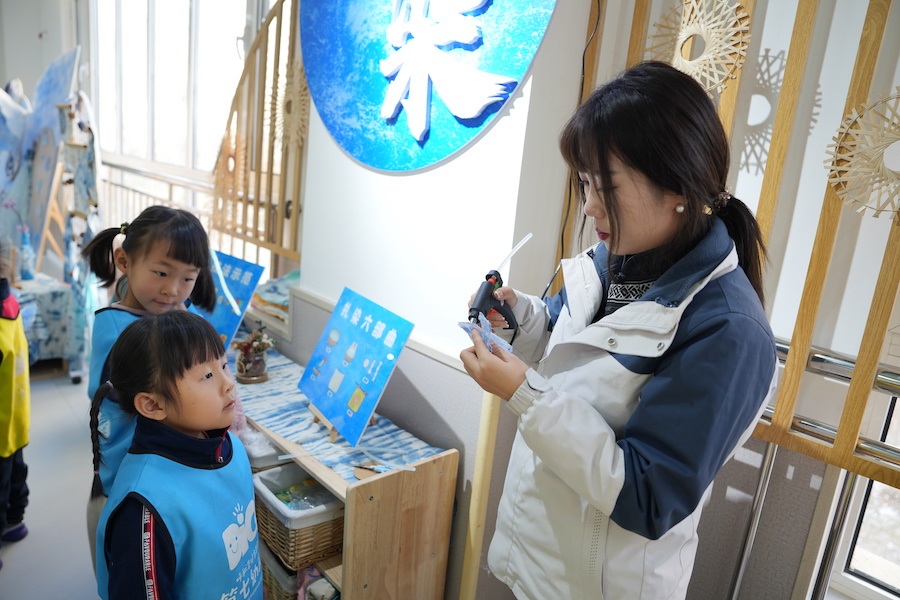 賽罕區(qū)第七幼兒園黨支部書記兼園長(zhǎng)劉曉菲介紹,混齡走班是打破平行班班級(jí)界限,讓不同年齡段不同班級(jí)的幼兒通過自愿選擇的方式進(jìn)入?yún)^(qū)域活動(dòng)的一種學(xué)習(xí)方式,活動(dòng)時(shí)寬松自由的活動(dòng)氛圍、靈活多樣的活動(dòng)方式,能讓幼兒與更多的教師、同伴一起游戲、共同學(xué)習(xí)、互相交流。
