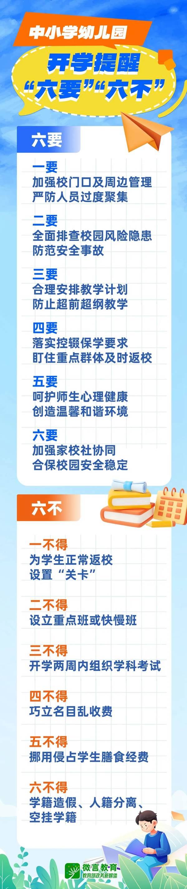 一圖看懂!中小學幼兒園開學提醒“六要”“六不”