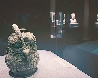 她的這番話讓我回想起開展當(dāng)天的凌晨。我站在展廳中央,環(huán)顧四下,看著那些跨越山海而來的文物和我們?cè)翰匚奈镆黄?,在燈下泛著溫?rùn)的光,像是散落在時(shí)間長(zhǎng)河里的星辰。那一刻,我覺得自己是個(gè)幸運(yùn)的拾星者,得以用展線作銀梭將它們串聯(lián)成新的星圖——這星圖里有雅典娜的榮光,也有西王母的“神性”;有陶繪酒罐的多彩,也有青銅酒器的厚重。不同文明的星光交匯于一方展廳間,文物雖不會(huì)說話,但它們的存在本身就是擲地有聲的宣言——文明的故事從來不是孤立的敘事,文明更從無高下之分,雖有山海之隔,仍可同頻共振。