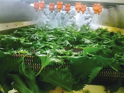 在紫蘇基地加工車間,20多名工人正在熱火朝天地忙碌著,采摘好的紫蘇葉在這里經(jīng)過清洗、精選、包裝等多道工序處理后,會(huì)按照不同品級(jí)進(jìn)行精細(xì)化捆扎分類,然后被送入冷庫進(jìn)行預(yù)冷,整個(gè)操作都是在無菌環(huán)境下進(jìn)行?!艾F(xiàn)在臨時(shí)工、長期工加一起有20多人,5年來,我們在七圪臺(tái)村、什不斜氣村、什拉烏素村等周邊培訓(xùn)了村民200人左右,他們每年農(nóng)閑時(shí)就會(huì)來基地打工,男工負(fù)責(zé)大棚管理、種植,女工負(fù)責(zé)采葉子、分葉子、包葉子?!卑合蛴浾呓榻B道。