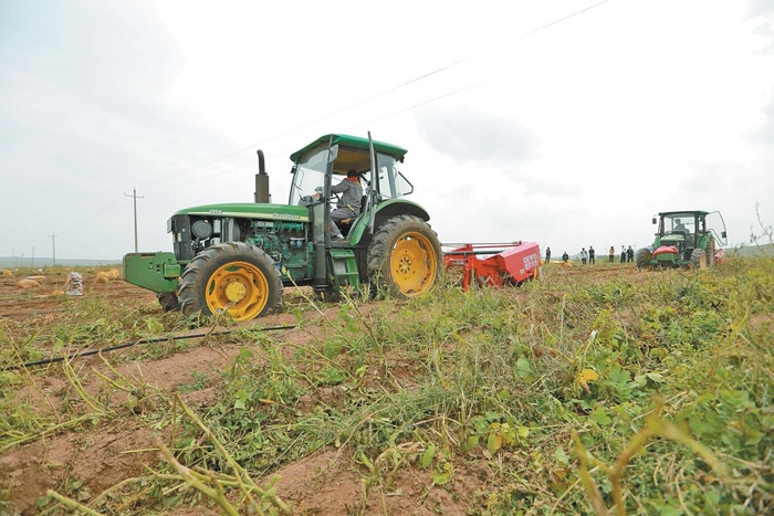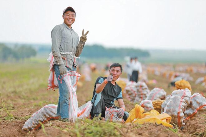 近日,在烏蘭察布市察右后旗白音察干鎮(zhèn)建設(shè)村馬鈴薯種植基地,見到該村連營(yíng)農(nóng)業(yè)機(jī)械合作社負(fù)責(zé)人郝軍時(shí),他正忙得不亦樂(lè)乎。據(jù)了解,今年馬鈴薯銷售價(jià)格可觀,他們的合作社迎來(lái)了又一個(gè)豐收年。