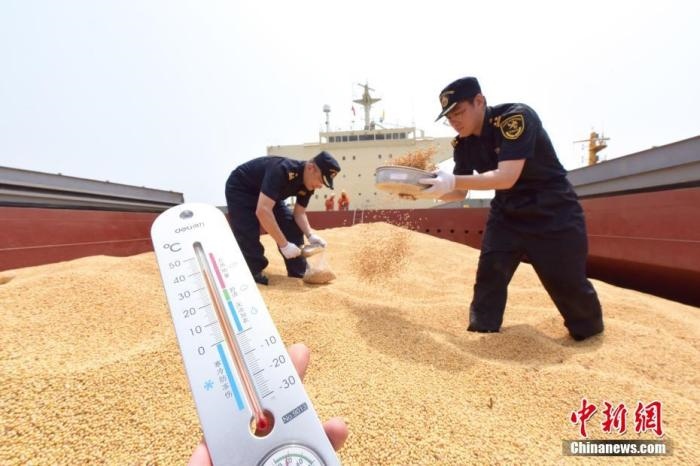 資料圖:海關(guān)人員對停泊于煙臺(tái)港檢疫錨地的“公主雅典娜”輪上的輸華大豆進(jìn)行感官檢疫。 曲彥霖 攝