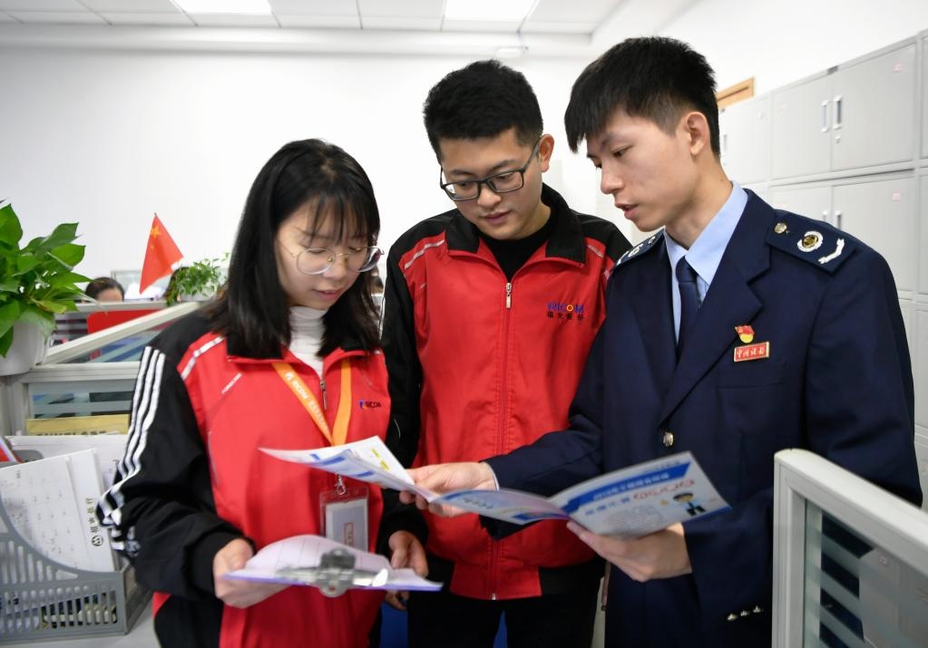 稅務(wù)工作人員向企業(yè)財務(wù)人員開展稅收政策輔導(dǎo)宣傳(新華社 發(fā))