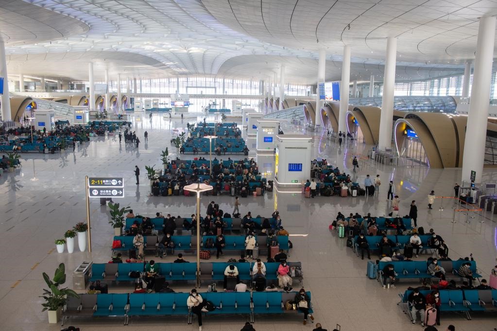 1月6日,旅客在2022年9月啟用的杭州西站候車大廳內(nèi)候車。新華社記者 江漢 攝