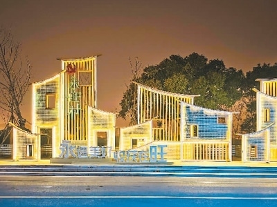 2022年12月28日,獲批全省“未來鄉(xiāng)村”稱號(hào)的浙江省寧波市鎮(zhèn)海區(qū)永旺村燈光璀璨。胡學(xué)軍攝(人民圖片)