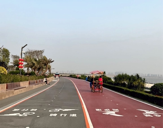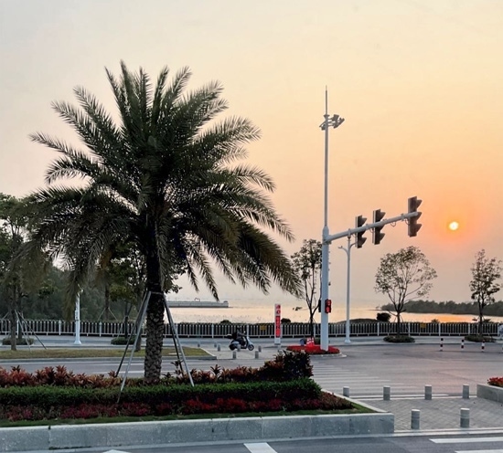 人民網(wǎng)東莞2月22日電 (記者趙雯 薛艷艷)濱海驛站坐落于廣東省東莞市濱海灣新區(qū),是東莞濱海長廊首個(gè)建成的重要節(jié)點(diǎn),緊靠海岸線,南臨前海,隔海眺望南沙自貿(mào)區(qū)、中山翠亨新區(qū)。立于驛臺前,海風(fēng)習(xí)習(xí)拂來,海天一線,日落降臨,浮光躍金。濱海驛站周邊建有廣場平臺、自行車道、沿海步道和園林綠化。濱海灣新區(qū)未來規(guī)劃建設(shè)一條長約40余公里的濱海長廊,以“運(yùn)動(dòng)廊+人文鏈+活力岸”為建設(shè)目標(biāo),打造生態(tài)海堤,不僅為游客提供親水體驗(yàn),同時(shí)也為鳥類、兩棲類動(dòng)物提供生境及遷徙通廊。