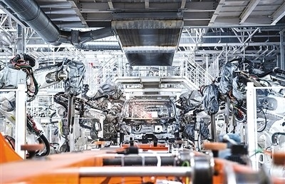 焊裝機(jī)器人在吉林長(zhǎng)春中國(guó)第一汽車(chē)集團(tuán)有限公司焊裝車(chē)間內(nèi)焊接車(chē)身