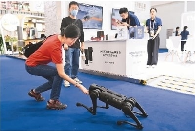 第三屆中國(guó)國(guó)際消費(fèi)品博覽會(huì)科技感十足,參展的各家中國(guó)企業(yè)將“科技感”滿(mǎn)滿(mǎn)的產(chǎn)品展示出來(lái),讓觀眾在消博會(huì)上與前沿的國(guó)產(chǎn)科技零距離接觸,體驗(yàn)國(guó)產(chǎn)“黑科技”。圖為4月13日,觀眾跟科大訊飛展出的機(jī)器狗互動(dòng)。新華社記者 楊冠宇攝